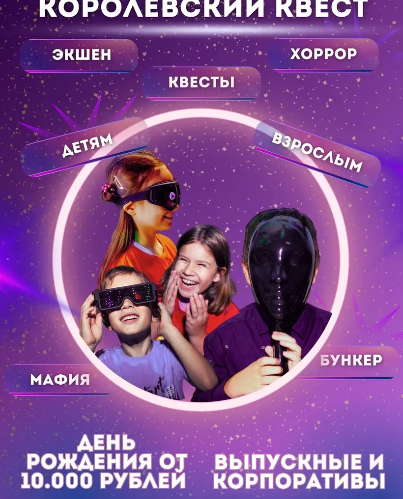 ⭐️ Квесты с профессиональными актёрами и электронными загадками (магические, детективные, выживание, прятки, по мотивам компьютерных игр, и даже ХОРРОР)